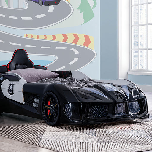 Hero on patrol! Your child will race off into dreamland adventures with this turbo squad car bed design. It's flashy and sturdy, complete with meta...
