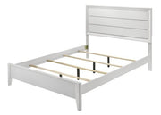This modern bedroom group sets itself apart through simple design with a few delightful twists. It starts with the clean white finish--a classic element that thrives when paired with subtle yet impactful details. Look closely and you'll notice the wave texture found on the headboard, footboard, and front panels of each of the matching case goods, beautifully framed by moldings with mitered angles. Finally, angled legs and gorgeous lines add contemporary flair to this ensemble's sleek silhouette.