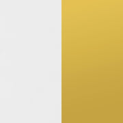 Add a bold statement piece to your space with this stunning modern accent cabinet. Featuring a glossy white finish with lustrous gold stainless steel trim, it showcases Art Deco flair with clean lines and geometric base supports. Behind double doors, adjustable shelves offer customizable storage. Crafted from durable MDF and stainless steel, this cabinet blends glamour and function beautifully in any setting.