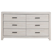 This six-drawer dresser offers a perfect balance of style and storage. Its clean-lined frame complements modern and contemporary spaces, while six spacious drawers provide ample room for clothing and accessories. Crafted from engineered wood with a durable laminate veneer, this dresser is built for everyday use. Matte dark bronze handles add a refined contrast, enhancing its sleek and functional design. Key Features: • Six-drawer dresser with a sleek and modern silhouette • Barrel oak finish enhances the natural wood grain-inspired look • Spacious drawers provide ample storage for clothing and essentials • Sturdy engineered wood construction ensures lasting durability • Matte dark bronze handles contrast beautifully with the finish • Durable laminate veneer resists scratches, stains, and wear