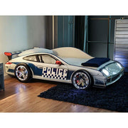 Hero on patrol! Your child will race off into dreamland adventures with this turbo squad car bed design. It's flashy and sturdy, complete with metal supports, working lights and a shiny finish.