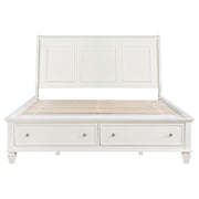 Upgrade your bedroom with this elegant Coastal style storage platform bed, blending classic design with modern functionality. The headboard features beautifully carved panels, while the footboard includes two spacious drawers, offering convenient storage for linens, clothing, or other essentials. Finished in a versatile neutral color, this bed complements various interior styles. Constructed from solid hardwood and engineered wood, it provides lasting durability and support. Designed with a platform base, it eliminates the need for a foundation, making it a stylish and practical centerpiece for any bedroom. Key Features: • Queen storage platform bed with carved panel headboard and two spacious footboard drawers • Cream white finish complements a variety of decor styles • Crafted from solid hardwood and engineered wood for durability • Platform design eliminates the need for a foundation • Convenient storage drawers offer space for linens, clothing, or other essentials