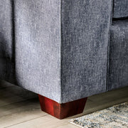 Add some modern charm to your home with this living room sectional. Cushions with welt trim provide visual interest while the wide, slightly angled arms offer a comfortable resting area for your arms or head. There's plenty of room to straighten up your leg on the right chaise offering the very best setting for long movies or casual gatherings. Oversized and bold, the whole set is upholstered in navy denim-like fabric.