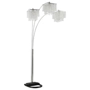 Adorn your space with this stunning crystal floor lamp, an arc design that radiates ambient lighting with effortless grace. Its hanging crystals shimmer from three elegant arms, casting a sparkling glow that enchants any room. Ideal for luxurious interiors, this statement piece blends modern sophistication with timeless beauty. Whether illuminating a cozy corner or enhancing a grand event, this lamp creates a captivating atmosphere of elegance and allure. Key Features: • Crystal floor lamp with an arc design for glamorous and radiant illumination • Electroplated chrome finish for a sleek, modern, and polished aesthetic • Three-arm arc structure creates a striking focal point in any living space • Hanging crystals offer ambient lighting for living rooms or dining areas • Crafted from heavy gauge metal for enduring strength and sturdy support • Features a convenient foot switch for seamless and effortless operation