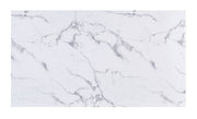 It's a dining ensemble designed for the upscale palate. The table top is made of durable faux marble that's as stunning as the original yet easier to maintain. Its edges are beveled to match the underlying frame made of stainless steel, finished in chrome. Similarly finished, the pedestal is designed in a V-shaped structure with bevels and edges reflecting light in a manner that's uniquely modern. Matched with beautiful wingback chairs, this piece sits perfectly in any luxurious space.