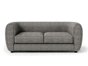 This compact living room ensemble is full of welcomed surprises. The tall arms and low back is an obvious homage to the tuxedo style, but the bulbous shape and smoother lines is a unique twist taking inspiration from the modern era. Underneath the seat cushions are high density foam, making firmer seats than one would expect for the shape that it is in. Finally, soft boucle fabric wraps around the whole piece highlighting a certain air of elegance and quiet class.